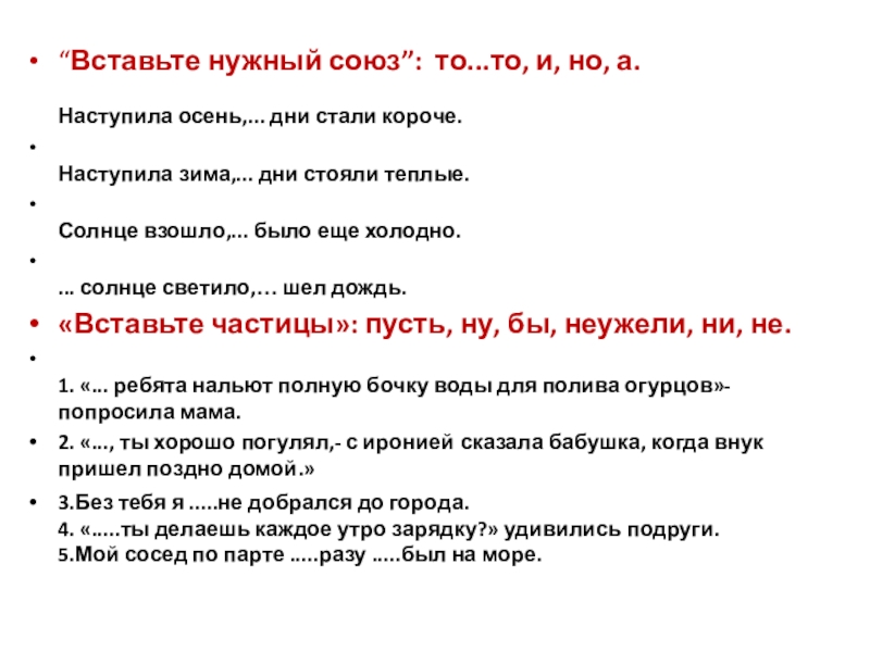 Слайд 15“Вставьте нужный союз”: то...то, и, но, а.