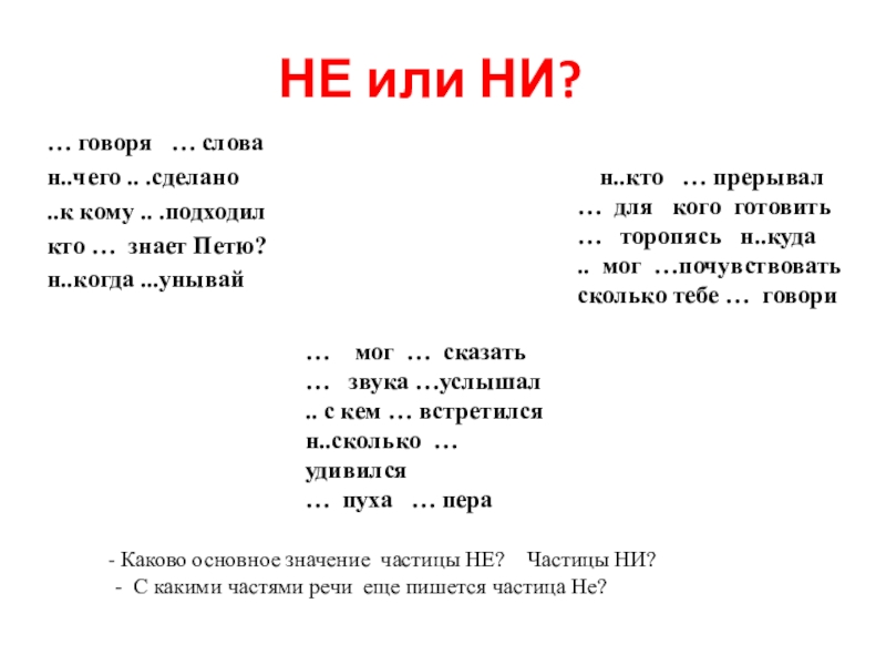 - Каково основное значение частицы НЕ? Частицы НИ?
