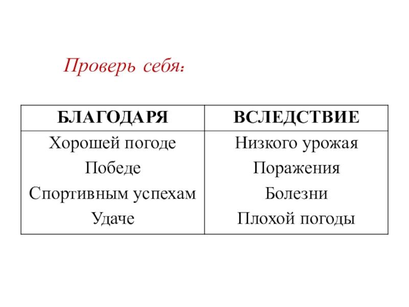 ЗАДАНИЕ: «Корректор». Вам необходимо правильно соотнести предлоги БЛАГОДАРЯ и ВСЛЕДСТВИЕ с