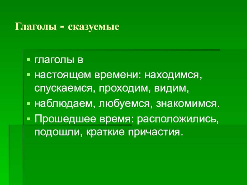 настоящем времени: находимся, спускаемся, проходим, видим,