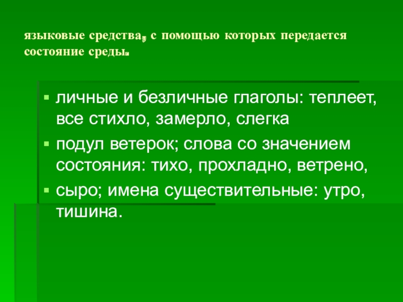 Слайд 17языковые средства, с помощью которых передается состояние среды.