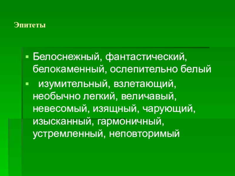 Белоснежный, фантастический, белокаменный, ослепительно белый