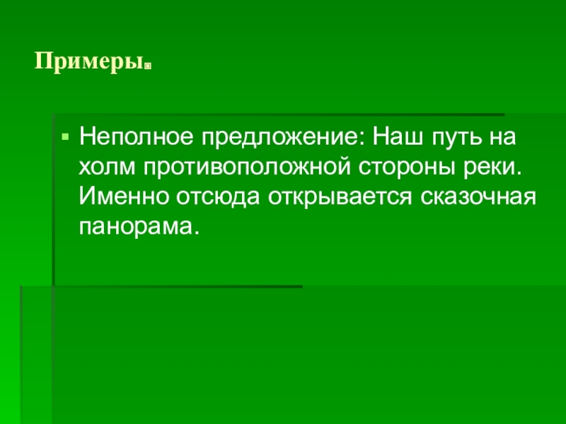 Неполное предложение: Наш путь на холм противоположной стороны реки. Именно отсюда
