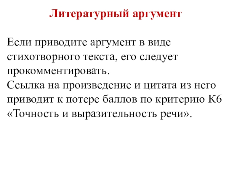 Если приводите аргумент в виде стихотворного текста, его следует прокомментировать.