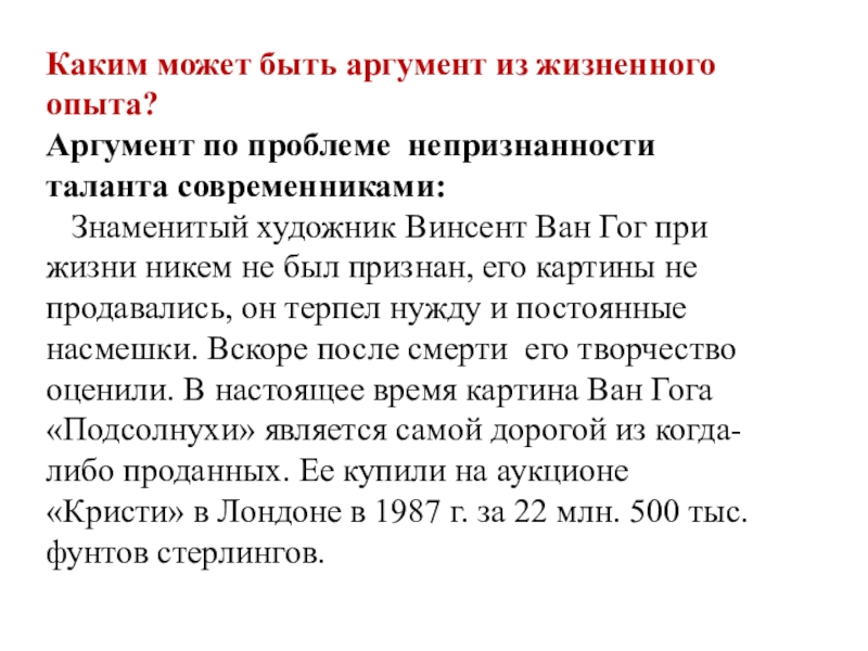 Слайд 25 Каким может быть аргумент из жизненного опыта?