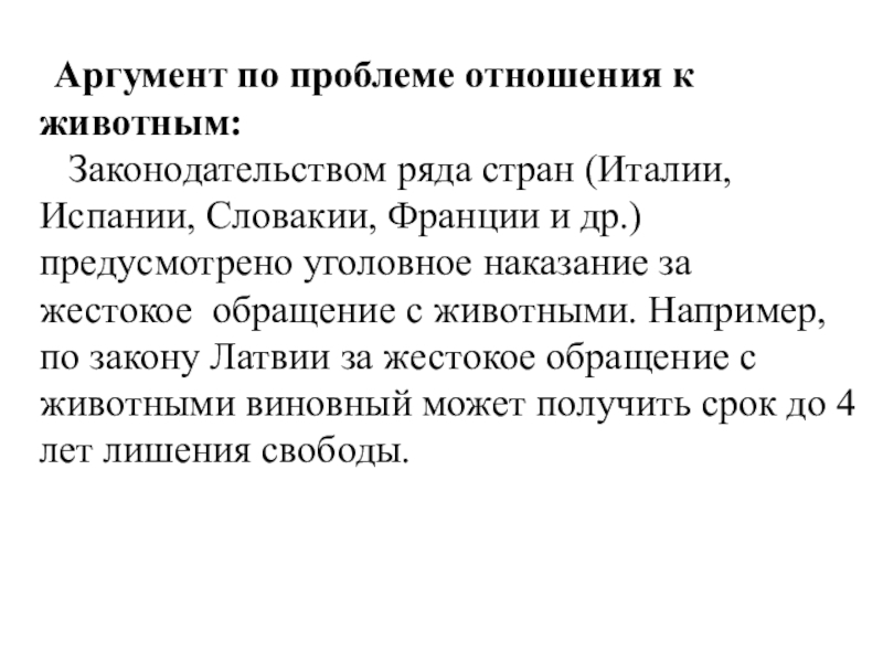 Слайд 29 Аргумент по проблеме отношения к животным: