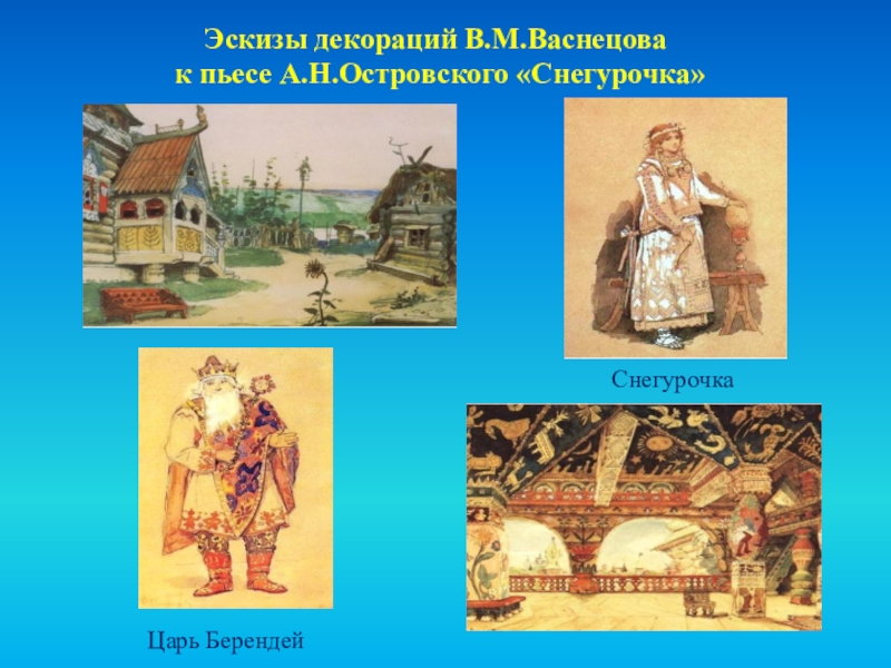 Эскизы декораций В.М.Васнецова к пьесе А.Н.Островского «Снегурочка»СнегурочкаЦарь Берендей