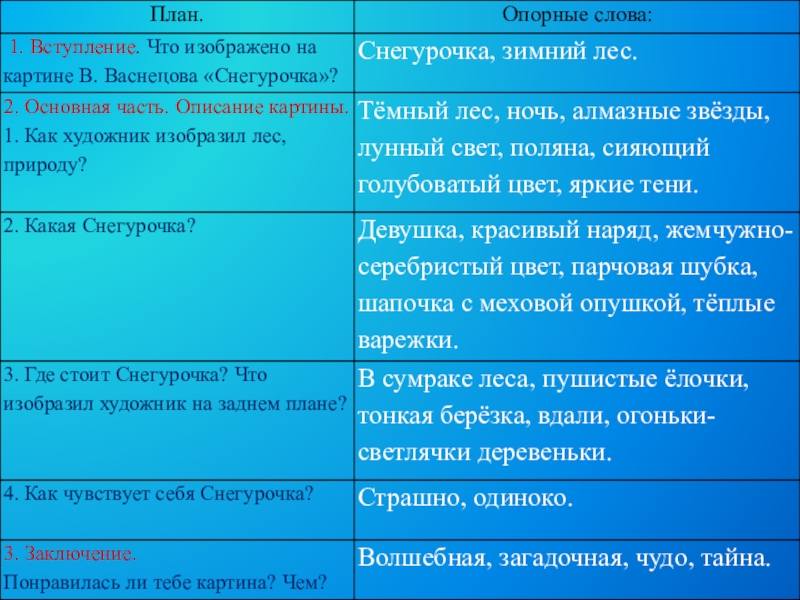Сочинение по картине В. М. Васнецова «Снегурочка»