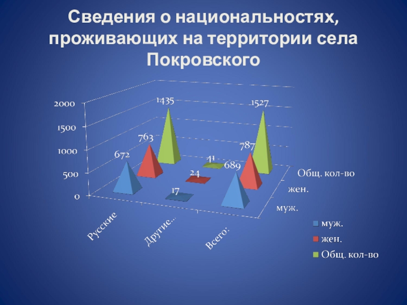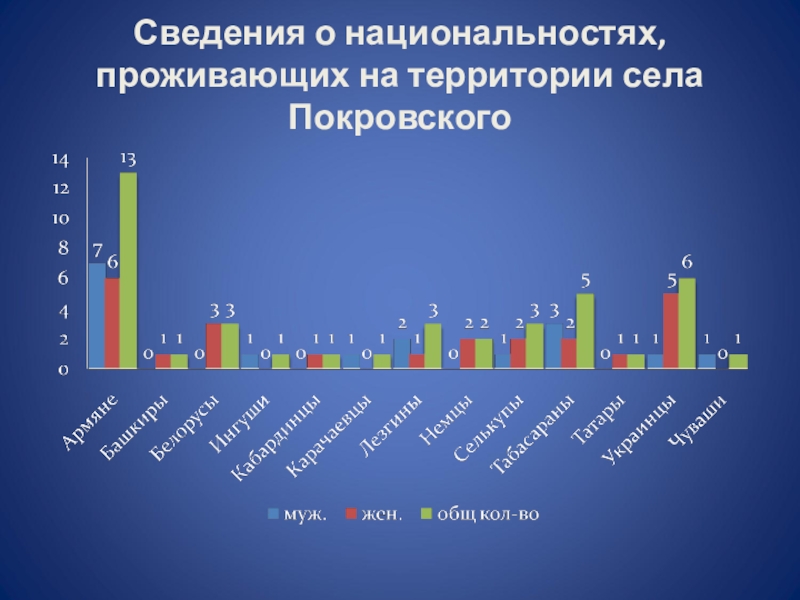 Слайд 23Сведения о национальностях, проживающих на территории села Покровского
