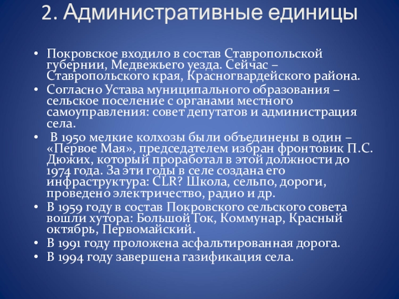В 1959 году в состав Покровского сельского совета вошли хутора: Большой Гок, Коммунар, Красный октябрь, Первомайский.