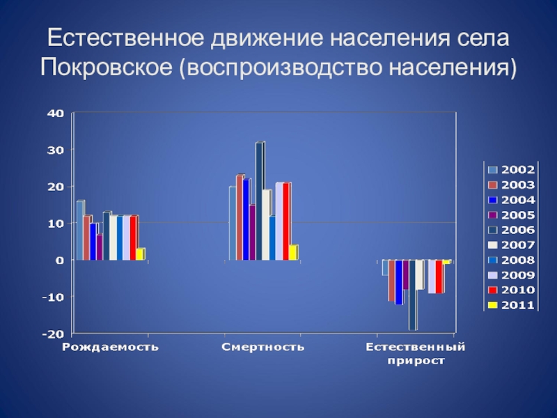 Слайд 21Естественное движение населения села Покровское (воспроизводство населения)