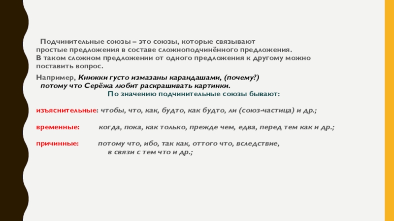 Слайд 5 Подчинительные союзы – это союзы, которые связывают