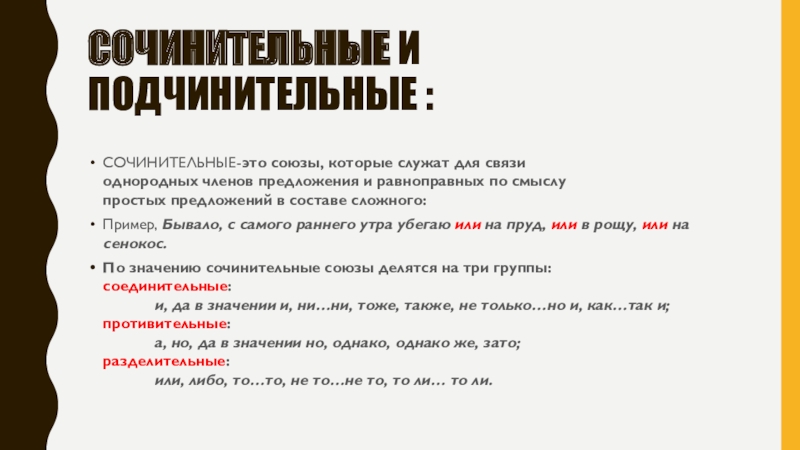 СОЧИНИТЕЛЬНЫЕ И ПОДЧИНИТЕЛЬНЫЕ