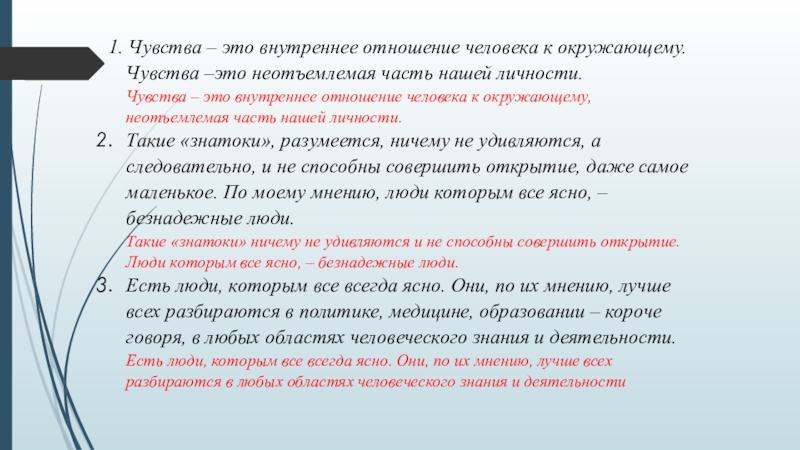 Слайд 8 1. Чувства – это внутреннее отношение человека к окружающему. Чувства –это
