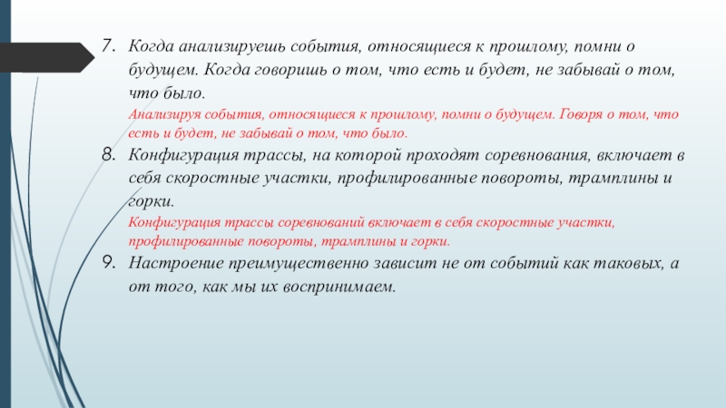 Слайд 12Когда анализируешь события, относящиеся к прошлому, помни о будущем. Когда говоришь