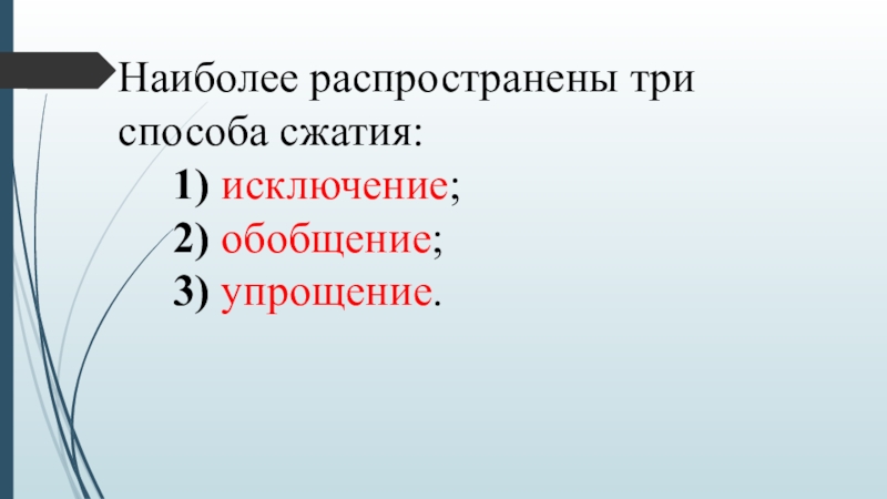 Слайд 6Наиболее распространены три способа сжатия: