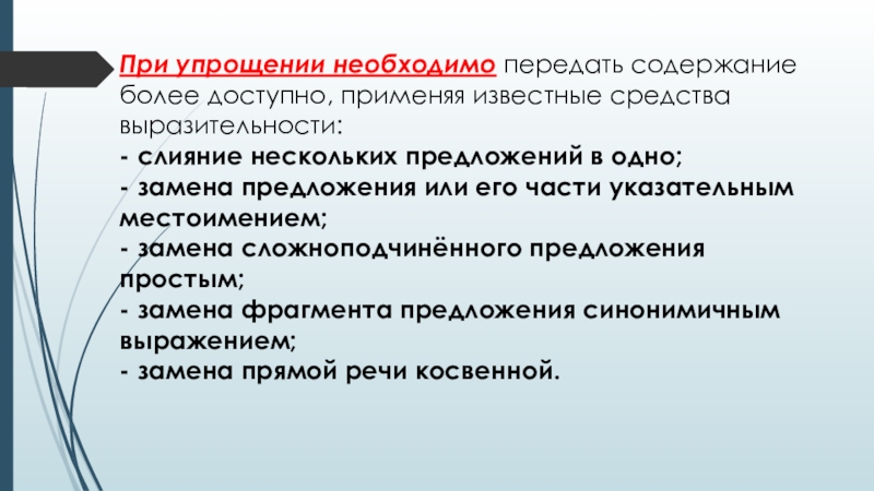 Слайд 11При упрощении необходимо передать содержание более доступно, применяя известные средства выразительности: