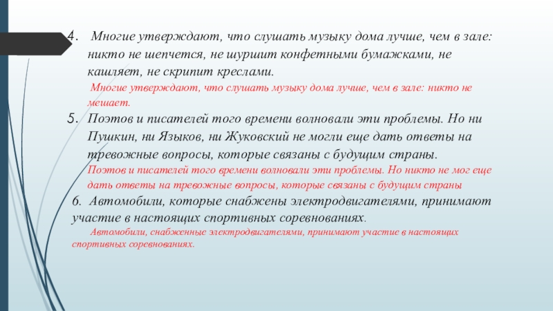 нескольких предложений в одно;