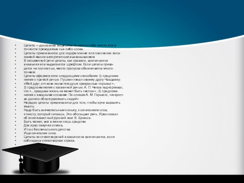 Цитаты привлекаются для подкрепления или пояснения изла-