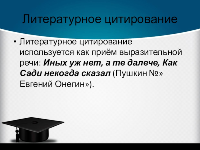 Литературное цитирование используется как приём выразительной речи: Иных уж