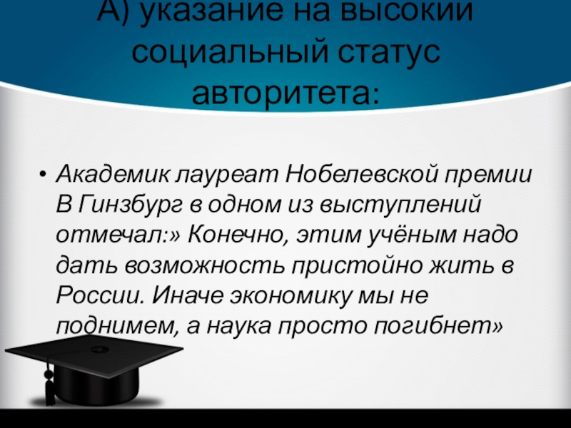 Слайд 8А) указание на высокий социальный статус авторитета: