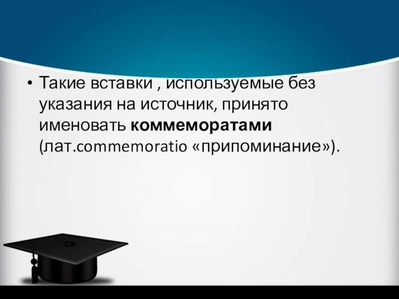 Такие вставки , используемые без указания на источник, принято именовать коммеморатами