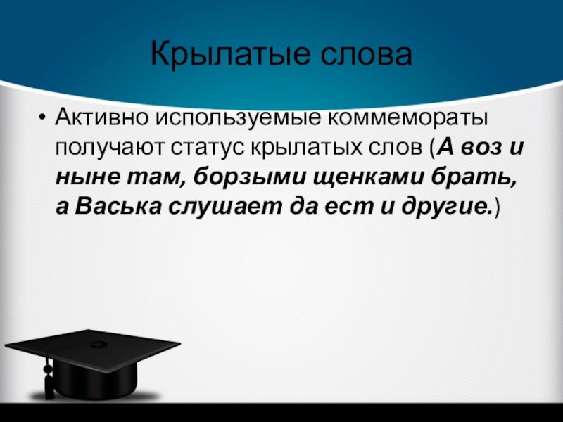 Активно используемые коммемораты получают статус крылатых слов (А воз и