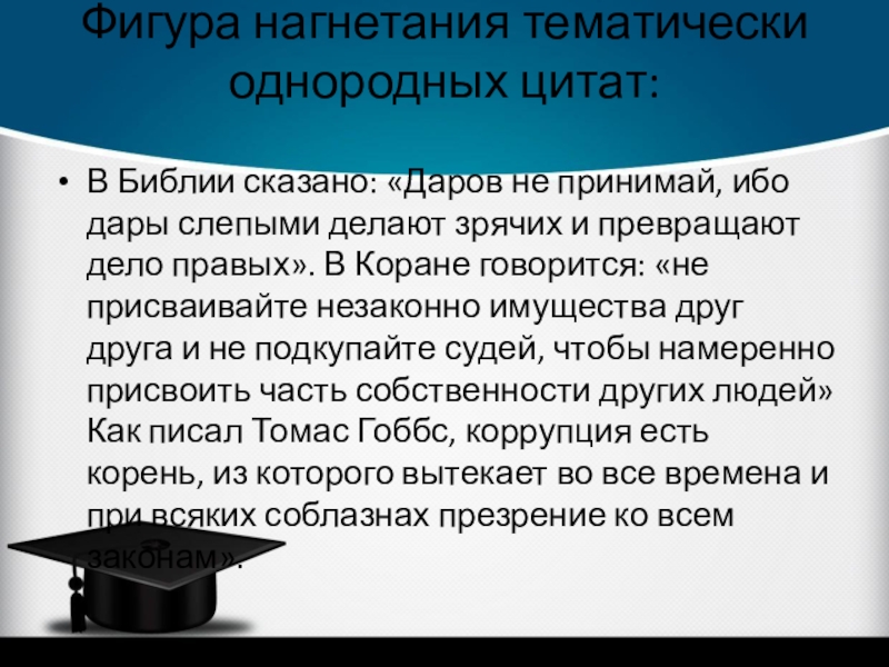 Слайд 9Фигура нагнетания тематически однородных цитат: