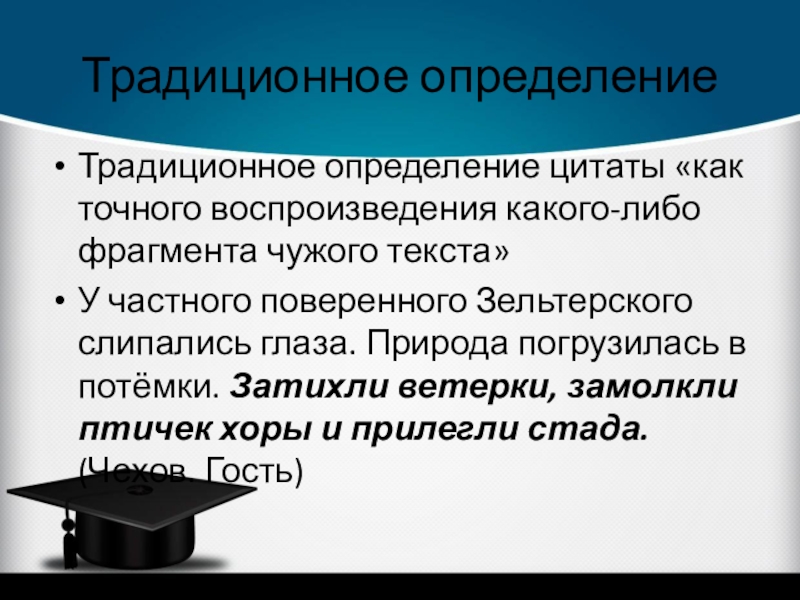 Традиционное определение цитаты «как точного воспроизведения какого-либо фрагмента чужого текста»