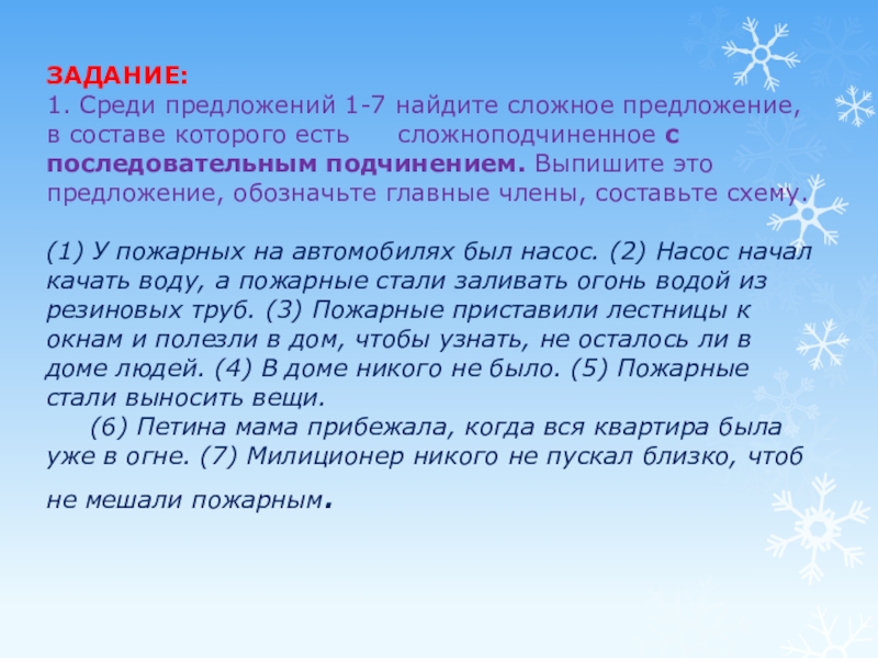 1. Среди предложений 1-7 найдите сложное предложение, в составе которого есть
