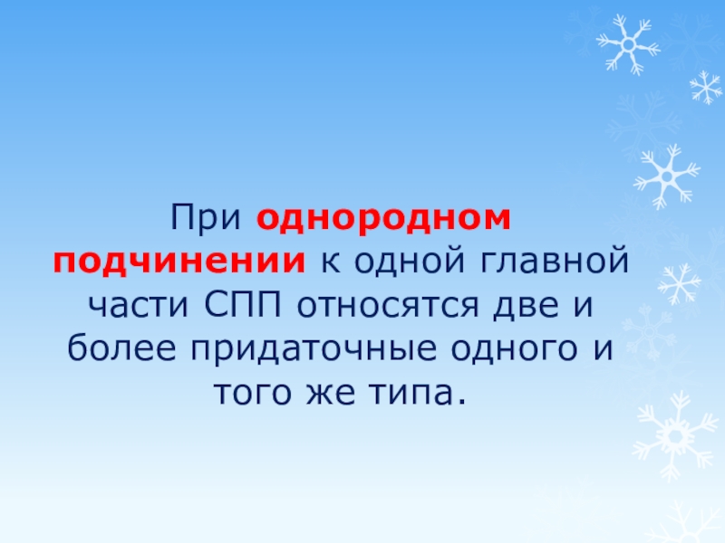 Слайд 5При однородном подчинении к одной главной части СПП относятся две и