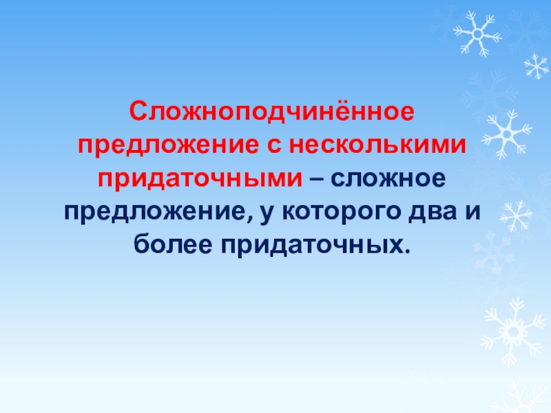 Слайд 3Сложноподчинённое предложение с несколькими придаточными – сложное предложение, у которого два