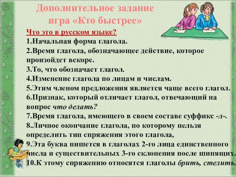 Глаголы в неопределённой форме имеют окончания ть, ти, нулевое окончание в глаголах на -чь.