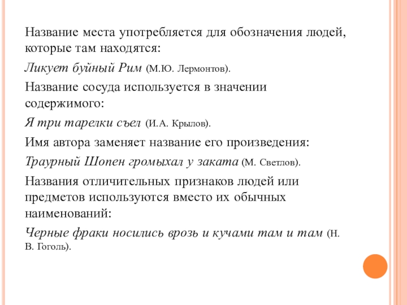 Слайд 9Название места употребляется для обозначения людей, которые там находятся: