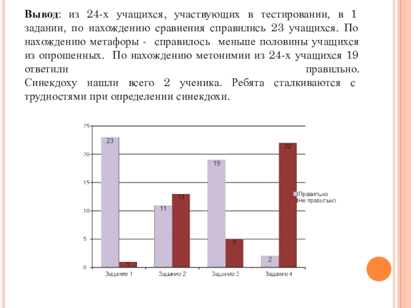 Слайд 14Вывод: из 24-х учащихся, участвующих в тестировании, в 1 задании, по
