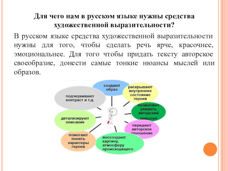 языке средства художественной выразительности нужны для того, чтобы сделать речь ярче, красочнее, эмоциональнее. Для того чтобы придать тексту авторское своеобразие, донести самые тонкие нюансы мыслей или образов.