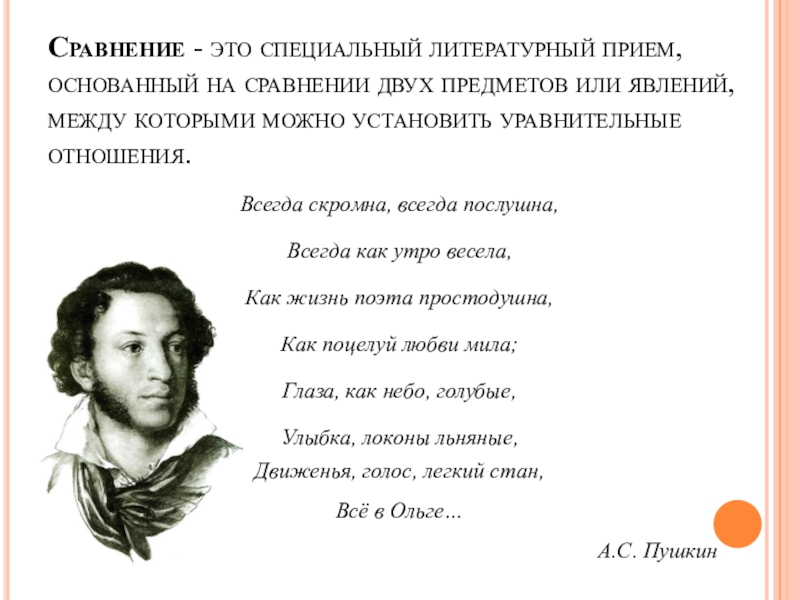 Слайд 4Сравнение - это специальный литературный прием, основанный на сравнении двух предметов