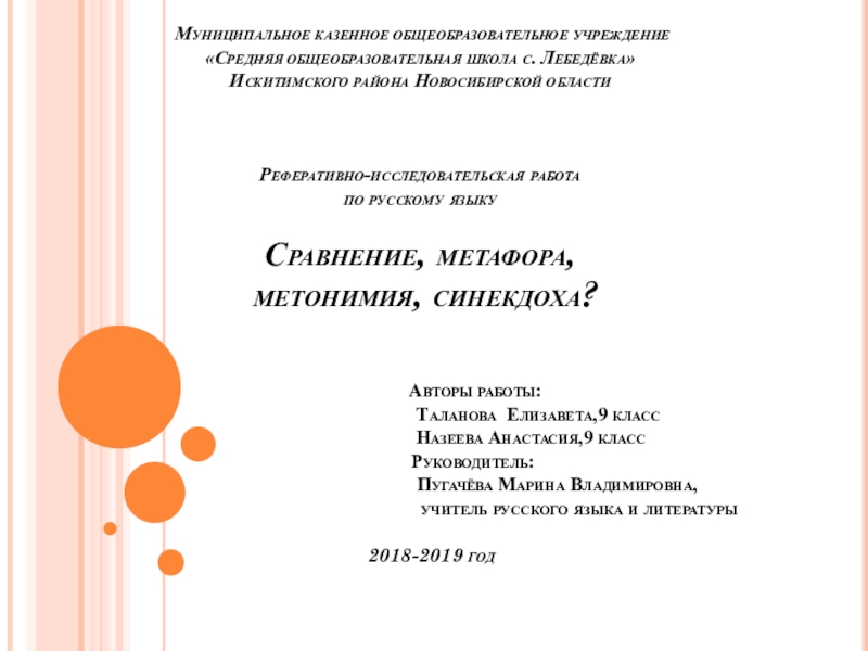 9,10 классов мы провели тестирование по нахождению таких средств художественной выразительности, как сравнение, метафора, синекдоха и метонимия. Ребятам нужно было в предложениях найти эти средства выразительности.