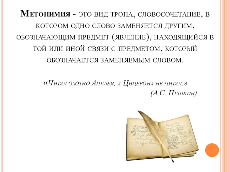 Слайд 6Метонимия - это вид тропа, словосочетание, в котором одно слово заменяется