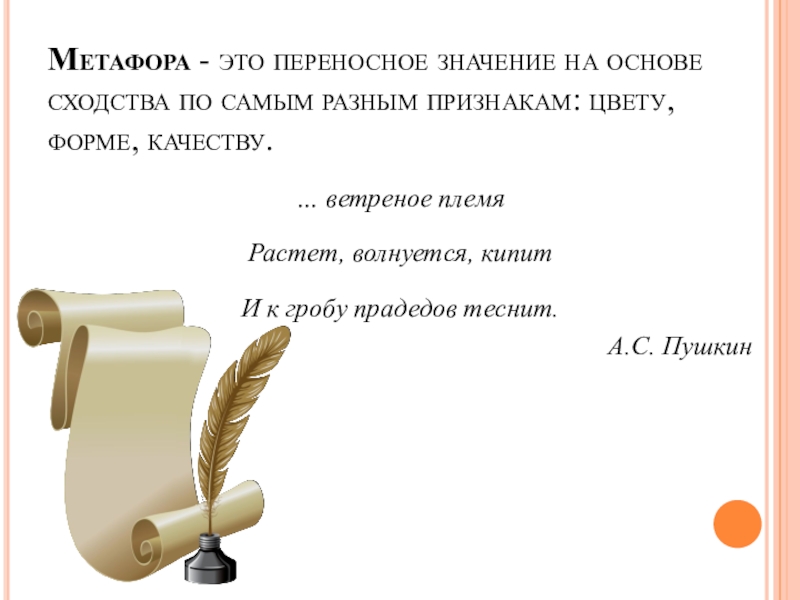 Слайд 5Метафора - это переносное значение на основе сходства по самым разным