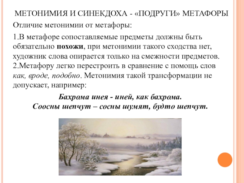 Слайд 10МЕТОНИМИЯ И СИНЕКДОХА - «ПОДРУГИ» МЕТАФОРЫ