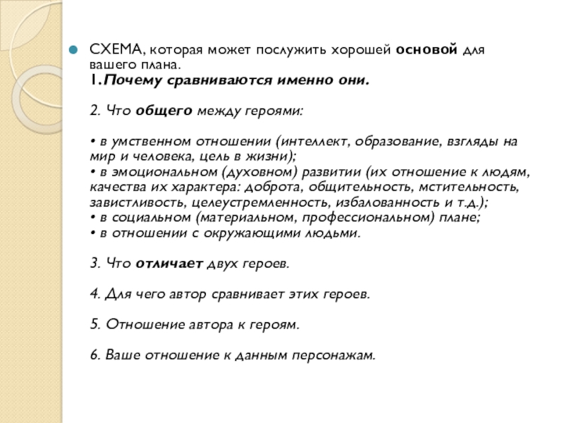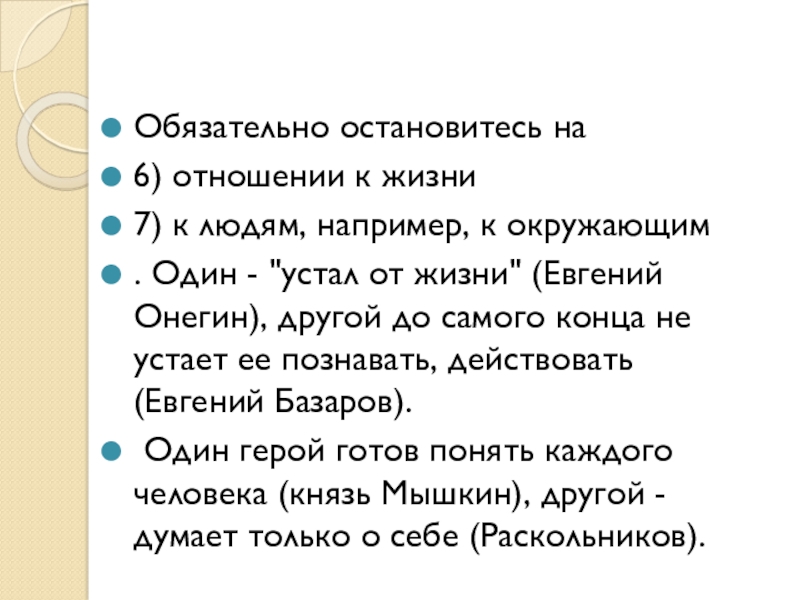 8)Важно не упустить сравнения убеждений героев, их философской позиции.
