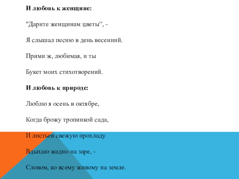 Слайд 22Интересы и стихи о любви. В стихотворении "Любовь у каждого своя”