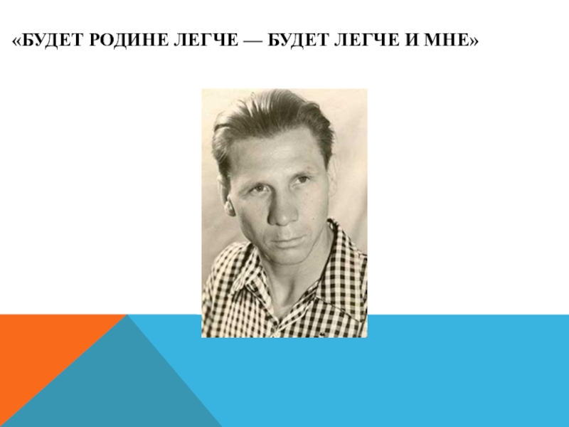 Слайд 2«БУДЕТ РОДИНЕ ЛЕГЧЕ — БУДЕТ ЛЕГЧЕ И МНЕ»
