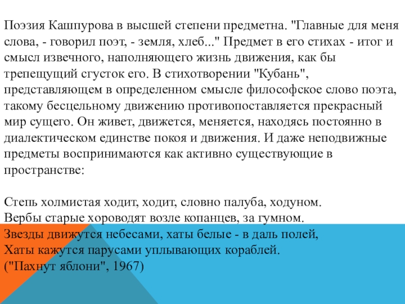 Слайд 17Поэзия Кашпурова в высшей степени предметна. "Главные для меня слова, -