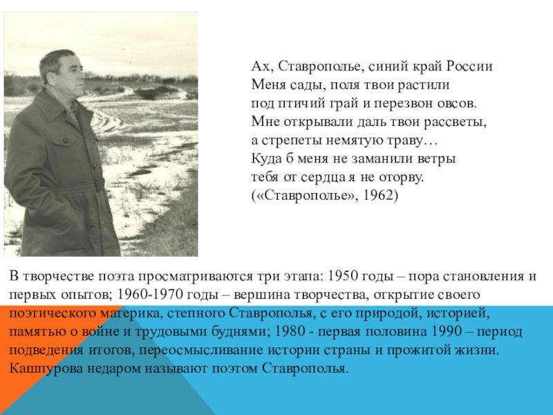 Слайд 14Ивана Кашпурова называют поэтом Ставрополья: природа Ставропольского края, его люди, его