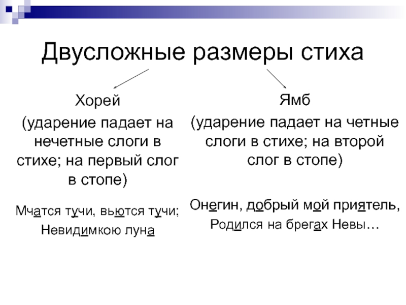 (ударение падает на четные слоги в стихе; на второй слог в стопе)