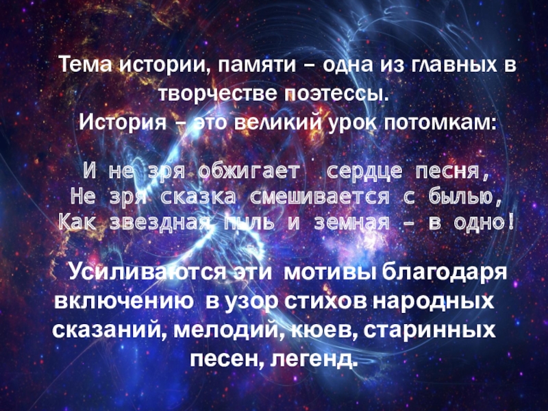 Слайд 17Тема истории, памяти – одна из главных в творчестве поэтессы.
