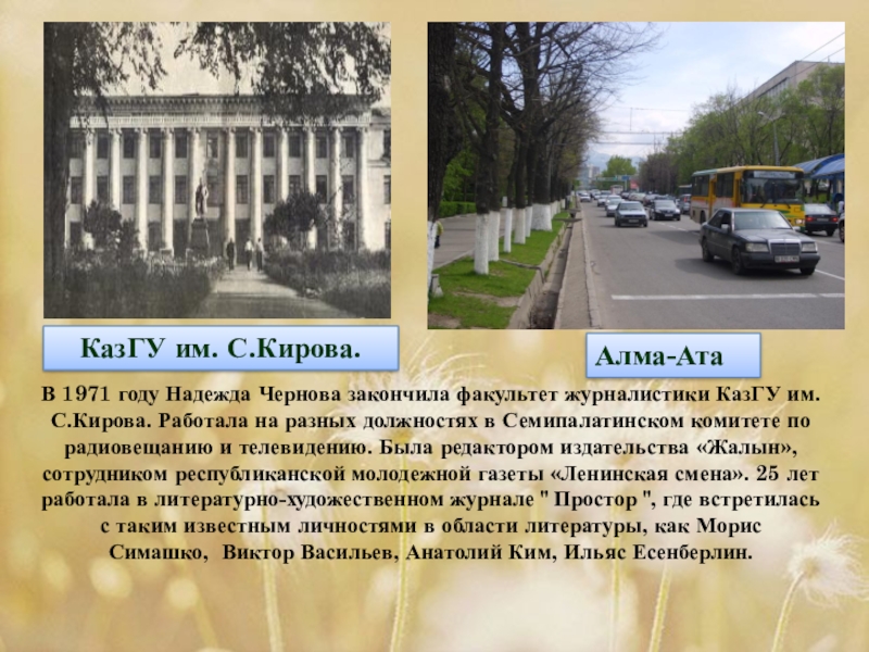 Слайд 7В 1971 году Надежда Чернова закончила факультет журналистики КазГУ им. С.Кирова.