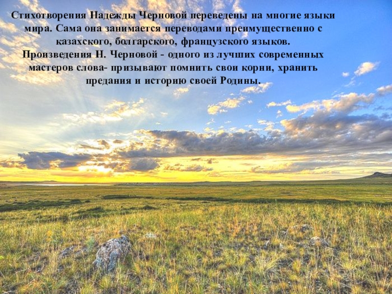 Слайд 11Степной колорит и поэтическое восприятие мира определяют содержание стихов Н. Черновой,